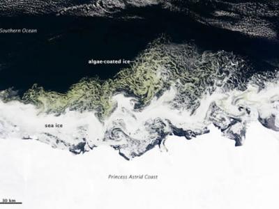 南极洲海岸绿色浮游植物漩涡 美国宇航局地球观测站今日公布了一张卫星照片,展示...