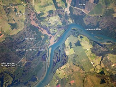 巴西河流泛滥平原似蓝色丝带 美国宇航局地球观测站今日公布了一幅国际空间站宇航...