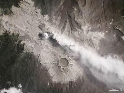 卫星照片展示了智利普耶韦-科登·考列火山(Puyehue-Cordón Caulle Volcano )爆...
