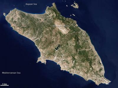 希腊罗德岛 美国宇航局地球观测站公布了一张卫星照片,展示了希腊罗德岛(Rhodes...