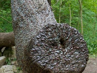 英国北约克郡惊现“摇钱树”,树干上长满硬币 当地居民调查发现,古人认为将硬...