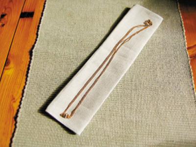 泰坦尼克号上打捞出水的项链 美国媒体19日报道,一件英国皇家邮轮泰坦尼克号遗物...