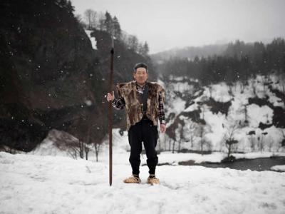 伊藤良一穿着又鬼猎人的传统背心与鞋子。如今猎人只...