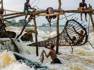 夕阳洒在超载的驳船上,驳船的引擎突突作响,向刚果河上游前进。 Photograph by ...