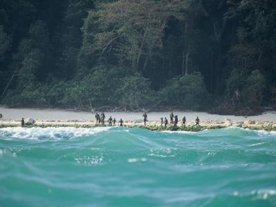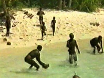 森蒂纳尔人极不欢迎外来者,从照片可见,部分人手持弓箭。 04年海啸后,曾有人...