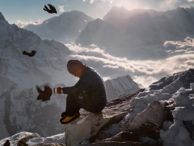 有人在峰顶挥舞冰斧,有人举起旗帜、家庭合照或祈祷卡。像这样由雪巴族登山者拍下...