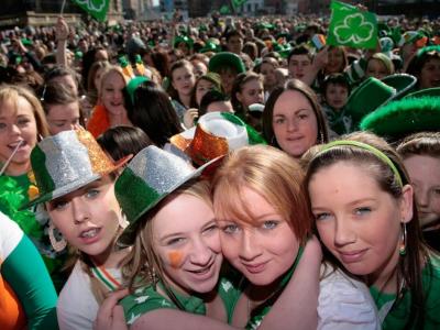 在北爱尔兰贝尔法斯特的海关大楼广场(Custom House Square)参加一场圣派翠克节...