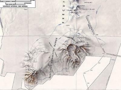 这座新发现的火山位于西南极洲的一段冰盖之下,接近图中的执委山脉。在测量该地区...