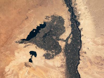 国际空间站宇航员拍下与尼罗河和西部沙漠接壤的心形盆地Faiyum绿洲照片(神秘的地球...