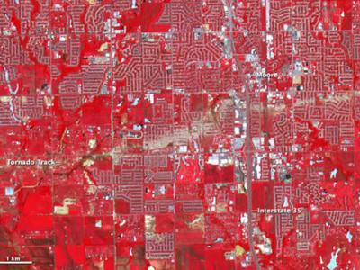 卫星照片展示美国俄克拉荷马州遭受强烈龙