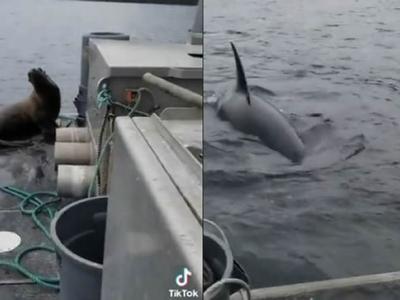 加拿大女子赶走为逃避虎鲸追杀跳上船的海