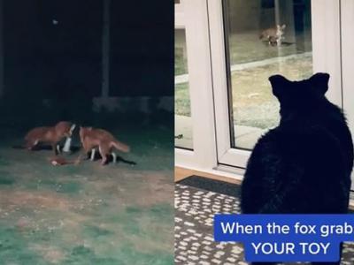 英国野生狐狸跑进一户人家庭院叼玩具开心抛高 狗狗隔窗目睹气炸(神秘的地球uux.cn...