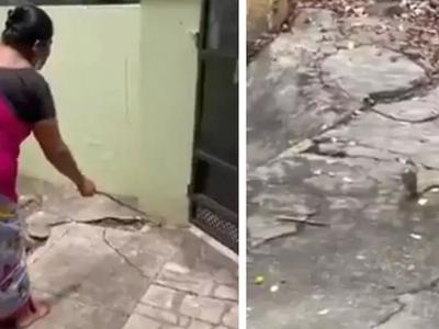 印度孔巴托一名妇女见到眼镜蛇闯入屋内