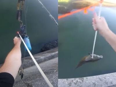 弓箭射鱼!美国网友分享“从水坝上狙击鱼