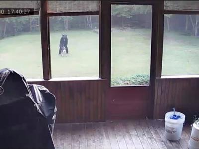 美国佛蒙特州女子正在做饭 邻居敲门告知:你家的德国牧羊犬正在跟黑熊玩(神秘的地...