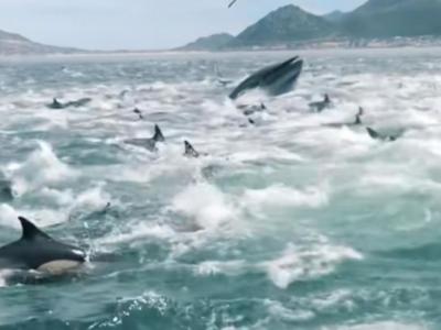 南非一对兄弟出海钓鱼遇到千只海豚海啸般席卷而来 3只座头鲸也乱入现场(神秘的地球...