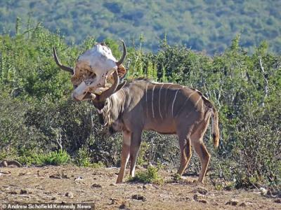 南非的阿多大象国家公园羚羊练习顶角 竟把大象头骨当成对象(神秘的地球uux.cn报道...