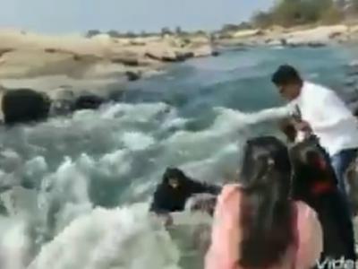 死亡自拍!印度奥里萨邦年轻女孩站在岩石上自拍不慎坠河 立刻被激流卷走(神秘的地...