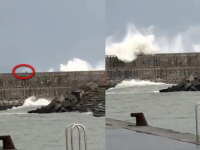 西班牙男子在海堤上慢跑时被突然出现的恐怖巨浪卷走 过程被民众拍下(神秘的地球uu...