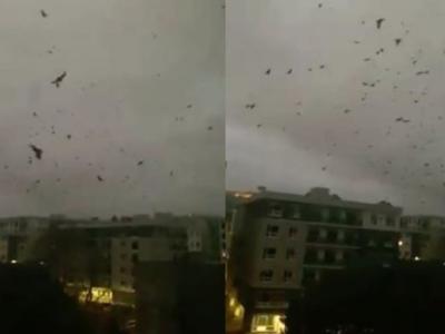 加拿大安大略省天空出现罕见奇景:上万只乌鸦在天空盘旋啼叫(神秘的地球uux.cn报道...