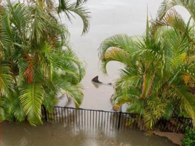 澳洲暴雨洪灾后 网友在后院拍摄到公牛鲨