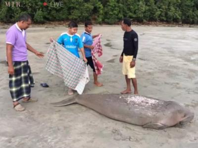 泰国董里府甘丹县尼波岛1.8米长儒艮搁浅