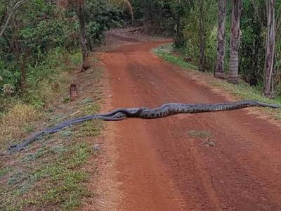 巴西兽医学生穿越丛林发现前方路面出现“减速丘” 停车查看才发现是三条森蚺(神秘...
