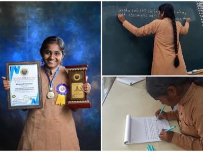 印度门格洛尔16岁女生Aadi Swaroopa拥有同时双手写字的特殊技能(神秘的地球uux.cn...