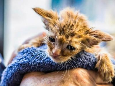 美国加州野火救出1只外型酷似《星际大战》尤达的猫咪(Image: B Davies/IFAW)(神...