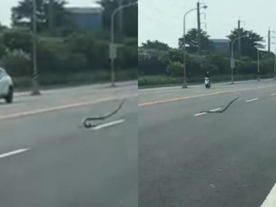 台湾屏东大蛇全身扭动在马路上跳舞引发热议