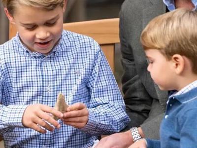英国乔治王子手握巨齿鲨牙齿化石的照片惹
