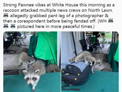 一群浣熊在美国白宫外攻击了记者 网友: