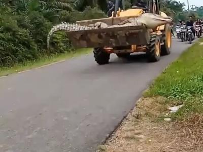 印尼邦加物里洞省50几岁巨型鳄鱼被村民认为是“恶魔的化身”遭斩首肢解(Credit: V...