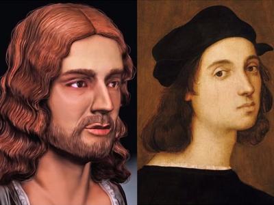 拉斐尔的自画像(右)的鼻子,比3D模型中的精致小巧。团队利用拉斐尔的头骨石膏模型...