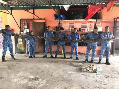 马来西亚男子在打扫自家后院时发现长达5公尺的大蟒蛇 蛇洞内还...