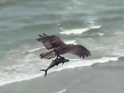 美国南卡罗来纳州超级大鸟抓着鲨鱼在天上飞?鱼鹰捕获北梭鱼?...