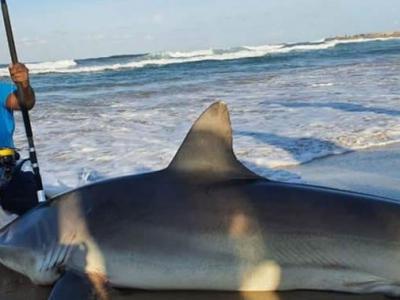 南非渔民用小沙丁鱼捕到一条重达300公斤鲨鱼(© 照片 : J...