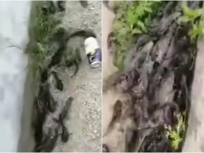 广东省潮州市上千条鱼跳上岸 网友怀疑可