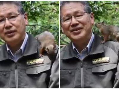 日本东京井之头自然文化园园长致谢 小松鼠爬肩捣乱(神秘的地...