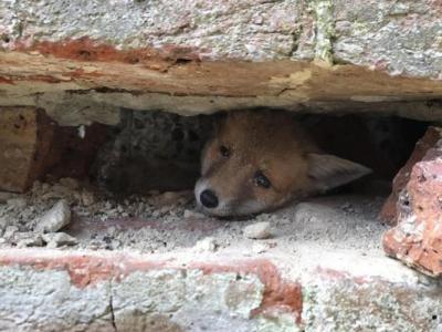 英国西萨塞克斯郡幼狐被困墙头窄缝 历劫一日终获救(神秘的地...