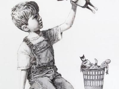 英国神秘涂鸦艺术家Banksy于南安普敦总医院展示黑白绘画为医护...