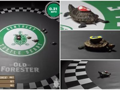 别开生面的乌龟打吡赛再度举行。肯塔基打吡大主持科尔默斯旁述...