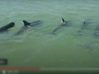台湾嘉义县布袋镇好美里海滩出现5只迷航小虎鲸 1只受伤(神秘...