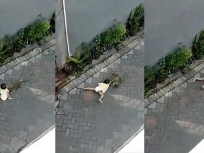 印尼泗水一只猴子骑车逃亡后冲到附近街道 掳走路边小女孩(神...