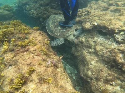 游客在小琉球浮潜踩海龟(神秘的地球uux.cn报道)据ETtoday(...
