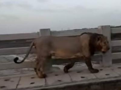 印度古吉拉特邦民众拍到一头狮子深夜在城