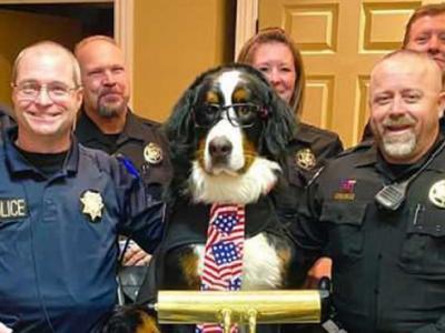 美国科罗拉多州乔治敦市伯恩山犬Parker成为荣誉市长 刚上任就...