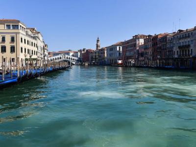 由于原本热闹的威尼斯运河在疾病大流行的隔离检疫期间变得空无...