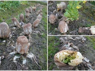外星人入侵?日本农田惊现“异形蛋” 原来是枯萎大白菜(神秘...