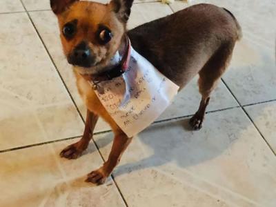 墨西哥居民在冠状病毒疫情期间派他的宠物狗吉娃娃去商店购物(...